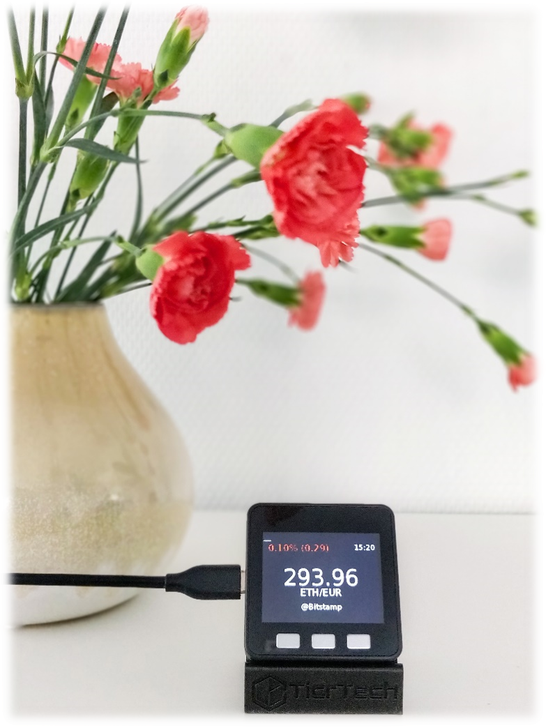 The TicrThing is your trusty crypto companion that makes the price watch as simple as checking the time.